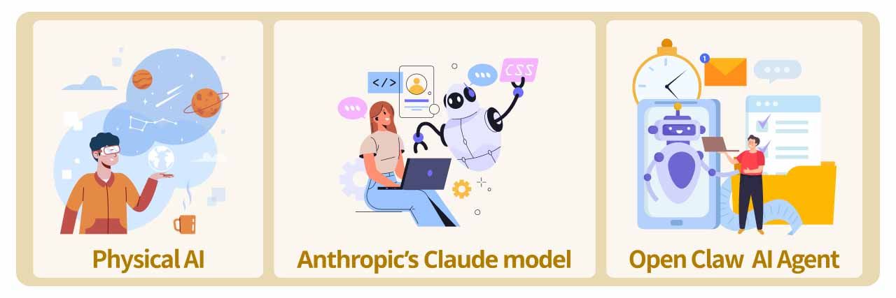From late 2025 into early 2026, several notable developments emerged at the AI application layer, including discussions around Physical AI, the rise of Anthropic’s Claude models, and the rapid popularity of OpenClaw.