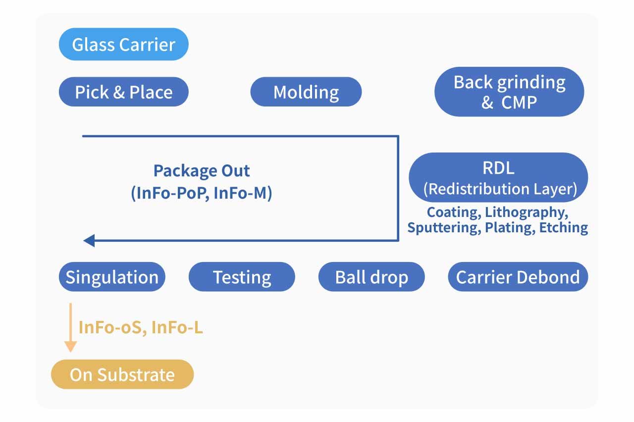 The InFO process consists of nine major steps, from glass carrier handling to wafer singulation. Among them, molding and RDL technologies are the most critical stages.