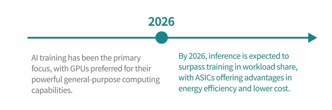 - Shift from Training to Large-Scale Inference As inference becomes the dominant workload in AI deployment, demand for optimized inference ASICs will surge.